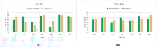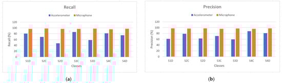 From different sensors, one can record particular measurements sensitive to varying types of conditions. This is why in our configuration, models trained with sounds data achieved different and better results than those trained with vibration data. These results also show that some sensors can be used individually, with an appropriate training model, as is the case for the DCNN model, which gave an accuracy of over 90% with the microphone data (see