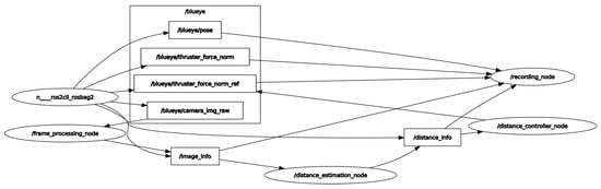 In this section, the simulation results are described. The main objective of the simulation was to test the performance of both Method 1 and Method 2 described in the earlier sections for distance estimation and tracking purposes. First, as an example, the working of the scheme is shown in Figure 11 where different ROS nodes are called in the terminal windows and communicate with the vehicle.