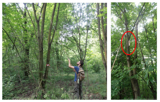 Figure 5 shows the phase of deployment of a very low-cost recorder inside the park (left panel) with a blow-up shown in the red circle (right panel).