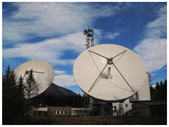 The Cheia Satellite Communication Center in Prahova County, Romania, comprises two decommissioned 32 m diameter parabolic antennas originally installed in 1976 and 1979, respectively, positioned at latitude 45°27′24″ N and longitude 25°56′48″ E at a 900 m altitude (Figure 3). The antennas baseline is 80 m, and each antenna is mounted on top of its own support building.