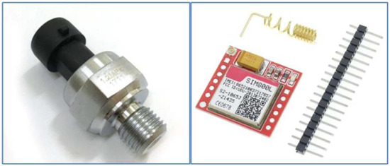 SIM800L communication module, EARU Electric pressure sensor (0–0.1 MPa, 0.5–4.5 V DC).