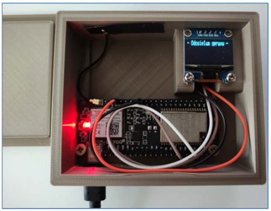 The LilyGO TTGO v1.4 microcontroller (T-Call v1.4 ESP32) is a more modern development board equipped with additional components (SIM800L WiFi GPRS Module, Chipset: ESPRESSIF-ESP32 240MHz Xtensa® single-/dual-core 32-bit LX6 microprocessor). The operating voltage is in the range of 2.7 to 3.6V with a working current of 70 mA [18]. To power the module from the battery only, it is necessary to use the EN button, otherwise, the module will not be powered from the battery.