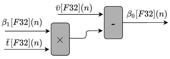 The hardware architecture implemented for the linear prediction technique based on linear regression was based on Equations (1)–(3). All circuits in the structure use 32-bits floating-point precision.
