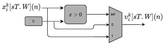 Block diagram representing the circuits used to implement the ReLU function () submodule in Figure 12.