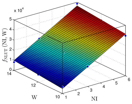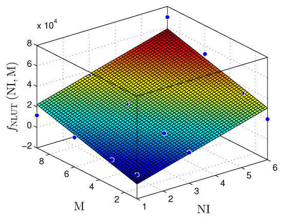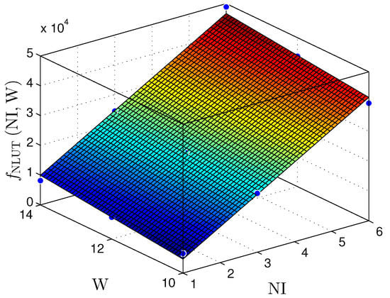 This section presents synthesis results for linear and nonlinear prediction techniques. Three key metrics are analyzed: area occupation, throughput, and power consumption. This work’s throughput () has a 1:1 ratio with frequency (MHz). All synthesis results analyzed here use a Xilinx Virtex-6 xc6vlx240t-1ff1156 FPGA, with 301,440 registers, 150,720 6-bits look-up tables (LUTs), and 768 digital signal processors (DSPs) that can be used as multipliers.
