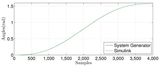 The circuit shown in Figure 15 calculates the MLP neurons’ weights, as previously described in Equation (10). It consists of two inputs, and , and two constants, and . The constants are defined using the fixed-point format .