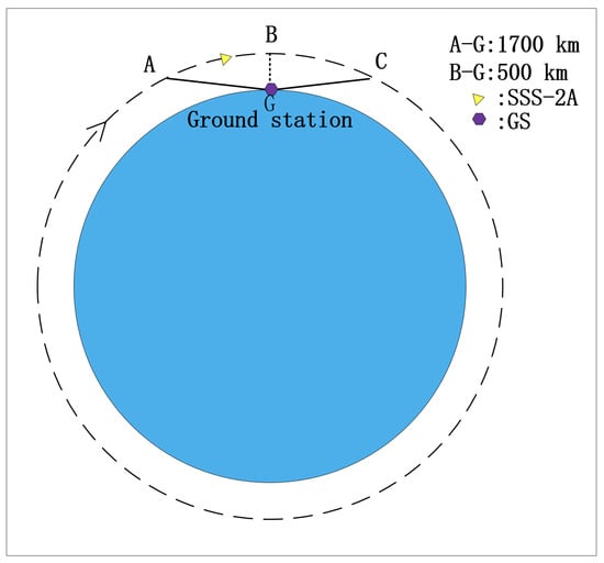 In the SSS project, a 500 km SSO is defined as the operating orbit. The distance from the satellite to a given ground node changes from 500 km to 1700 km, and the pitch angle changes from 90° to 10°. The relative velocity changes from 0 to 7 km/s. As shown in
