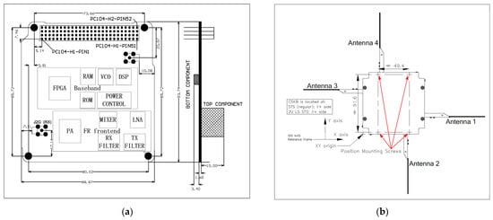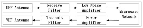 The UVH transceiver consists of digital baseband components and RF frontend components. It can also transmit and receive signals. In our mission, the downlink frequency for TM and DT is 435.775 MHz, and the uplink frequency for TC is 145.985 MHz. The internal power amplifier (PA) outputs a 0.5 W RF signal to the antenna. The average gain of the specific antenna is −3 dB; thus, the equivalent isotropically radiated power (EIRP) can be defined as 24 dBm.