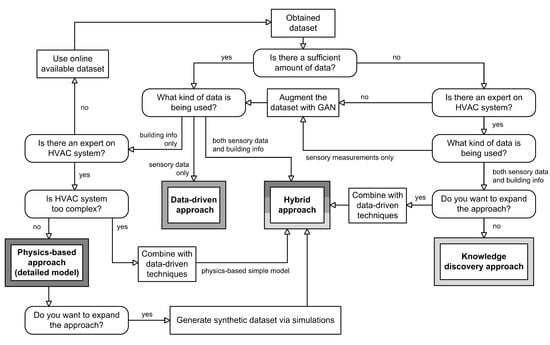 The data-driven approach, also known as the process-historical, refers to black-box modeling and is based solely on sensory measurement data, without assigning any specific physical meaning to the measurements, and does not take into account the characteristics of the building in question [38,39,40]. Its primary objective is to mathematically link observed inputs to measurable outcomes. Moreover, no expert knowledge or understanding of the physical aspects of HVAC systems is required, which greatly simplifies model development. In essence, these models are flexible to the changing system behavior of the building and can be easily scaled to meet system needs [41]. On the other hand, these models often require large amounts of historical data and a wide range of sensor inputs that are not readily available in all buildings. In this regard, the costs associated with the quality and variety of sensors utilized to measure the data, as well as the time required to obtain a sufficient amount of historical data–both of which are essential to building a data-driven model—can be overwhelming [15].