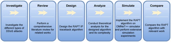 The DDoS attack that the proposed algorithm aims to stop and handle is of the flooding category. The reason behind this is coming from the fact that a significant portion of DDoS attacks falls under this category [34]. In 2019, it was found that 36% of DDoS attacks are UDP Flooding and 14% SYN Flooding attacks in the year 2019 alone [35]. Ideally, the tracing scheme should be able to identify the source of any piece of information sent over the network. Within the IP protocol framework, a packet is the smallest atomic unit in the data and any smaller division of the data (e.g., byte) is contained in an IP packet. A typical tracing system must accurately identify the source of any random packet, and any larger data unit or data stream that can be separated by searching for any particular packet containing data within that stream.