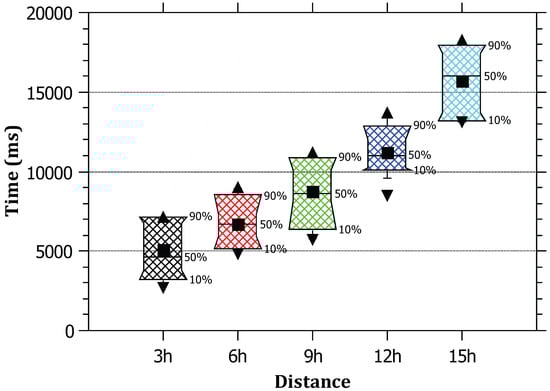 This experiment set examined the effect of changing the attack distance (hop count) on each of the tracing time, detection time, and processing time. Different topologies were considered with different distances between the attack source and the victim. The Waxman model proposed in [40] is used to create network topology. This Waxman model is a variant of the Erdös–Renyi random graph model in [41] with additional characteristics that are specific to the network. The amount of traffic generated was set to 3000 packets for each of the edge routers. The distances considered are 3, 6, 9, 12 and 15 hops. The rest of the parameters were set as in the first experiment set. The simulator was run 15 times for each of the distances, and the results were averaged.