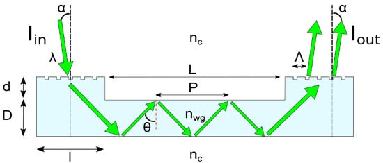 where is the grating period, and m is the diffraction order, Figure 1. Since light can only propagate in the waveguide as long as , a condition can be put on the incidence angle