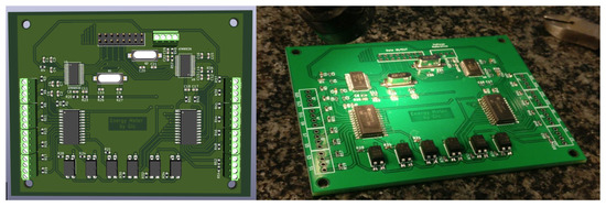 Once the requirements have been defined and the necessary tests with physical components have been carried out, the circuit schematic that will be used in the final design is drawn. PCB drawing is performed using a specific CAD program called KICAD [48]. Part of the design and assembly processes are depicted in Figure 8.