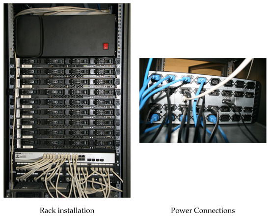 To reduce energy consumption and impacts on global warming of data centers and server farms, different approaches have been proposed [3]. A review of power consumption strategies is presented in [4]. Some works propose controlling and monitoring cooling systems [5,6,7,8], because almost 40% of the energy supplied to the server’s facility is used for refrigeration purposes. Other works focus on server design with the aim of improving the performance of processing elements [9,10,11,12,13]. Implementing these actions improves the performance of the specific element, but does not offer a significant reduction in consumption, because they only act on one element of the installation [4].