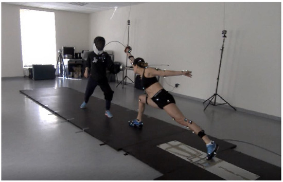 - Bottoms, L.; Greenhalgh, A.; Sinclair, J. Kinematic determinants of weapon velocity during the fencing lunge in experienced epée fencers. Acta Bioeng. Biomech. 2013, 15, 109–113. [Google Scholar]