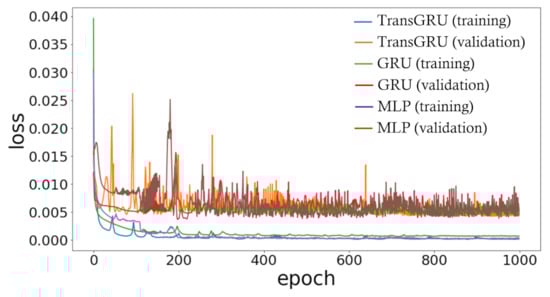 All models were trained using the hyperparameters in Table 3. We used the Adam optimizer [40] with a learning rate of 0.0001. The batch size was selected as 18 for 1000 epochs. Lastly, we selected the mean squared error (MSE) as our objective function.
