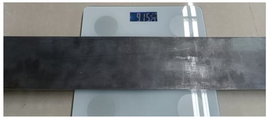 The mass of the beam structure with threaded rods were measured in the laboratory, and it was equal to 9.15 kg, as shown in Figure 10. At the same time, according to the updating density of FEM and the geometric dimensions, the mass of the beam structure was equal to 8.98 kg, which was slightly smaller than the true value. This is because the length of connection between the beam structure and the threaded rods was smaller than the lengths of the threaded rods, and a part of the threaded rod was not taken as the part of beam structure. Therefore, the updating density of the FEM could be deemed as reasonable.