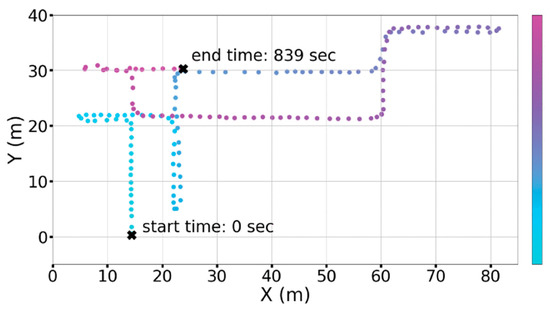 where represents the fingerprint vector collected at time t and is the 3D position vector corresponding to the sampling point at time t. The 3D position vector is defined as shown in Equation (3):