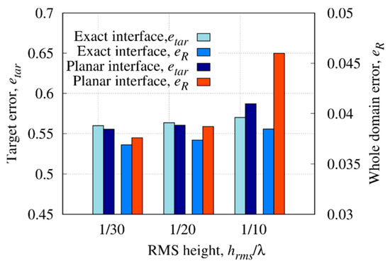 Reconstruction errors in the whole domain and inside the target versus the RMS height of the air–soil interface, .