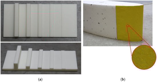 Artifacts for validating reconstructions of the surface topography from macro- and micro-height variations. (a) shows the 3D-printed step artifact with nominal heights: 0.63 mm, 1.25 mm, 2.5 mm, 5 mm, and 10 mm. (b) shows an example of a foam artifact with the P40 sandpaper attached to it.
