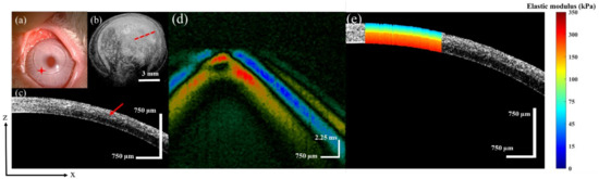 - Larin, K.V.; Sampson, D.D. Optical coherence elastography—OCT at work in tissue biomechanics [Invited]. Biomed. Opt. Express 2017, 8, 1172–1202. [Google Scholar] [CrossRef]