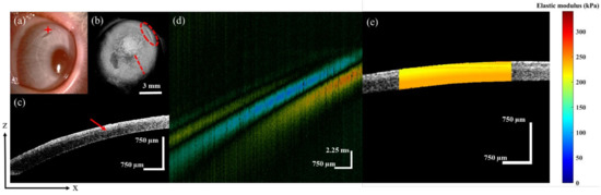 - Twa, M.D.; Li, J.; Vantipalli, S.; Singh, M.; Aglyamov, S.; Emelianov, S.; Larin, K.V. Spatial characterization of corneal biomechanical properties with optical coherence elastography after UV cross-linking. Biomed. Opt. Express 2014, 5, 1419–1427. [Google Scholar] [CrossRef]
