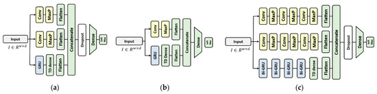 For RHLVS, a deep learning-based classification model is used. A model structurally identical to the model for BBS HAR data proposed in [35] but with a slightly lower capacity is used for the BBS HAR data. The complex model for public HAR data proposed in [36] is used for public data, and the baseline model for public HAR data is used for comparison. Figure 4 depicts the structure of the HAR model for BBS and public data. The 1D-CNN convolutional layer used in the three models has a filter size = 64, kernel size = 3, activation function = “ReLU”, and maxpooling size = 2. The unit size of the GRU layer is taken to be eight, and an 8-size hidden state is the output for each unit. The Model for BBS HAR data uses a 50% dropout layer, and the complex model for public HAR data uses a 70% dropout layer. The number of perceptrons in the dense layer is 100 in all three models.