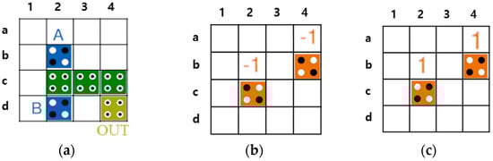A comparison of Equations (7) and (8) shows that the potential energy when the polarization (P) of cell 1 = −1, is smaller than the potential energy when it is +1; therefore, the polarization of cell 1 is determined to be −1. After that, the state of cell 1, in which the polarization is determined, is added. Physical proof of cell 2 is also performed and the result is shown in Equation (9):