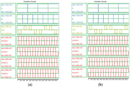 Simulation result: (a) XOR gate, (b) XNOR gate.