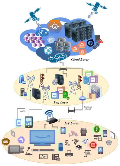 The network of all of these smart devices that are connected to sense, communicate, and interact within them and with the external environment on real-time data and make decisions by processing these data is collectively called the Internet of things or the IoT. All IoT devices are connected centrally to the cloud to compute the enormous amount of data that IoT devices collect [10,11]. The cloud also has a vast data storage capacity and is generally remotely located from the devices. Furthermore, the cloud provides different kinds of services, such as software as a service (SaaS), platform as a service (PaaS), and infrastructure as a service (IaaS), heading towards anything as a service (XaaS).
