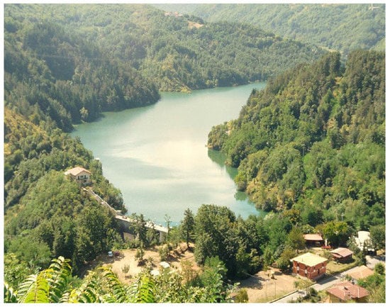 Figure 3. It is an artificial lake with a 30 m dam which serves as hydro-tank for the Castelnuovo hydroelectric power plant, located close to the lake. Castelnuovo power plant is the third biggest of the area; that justifies the importance of an accurate study of the hydro resource. In particular, Pontecosi basin is located at the heart (the middle-upper part) of the hydro-logical system, hence its good functioning is vital for the operation of the whole system, both upstream and downstream, for the reasons previously described. Having a good prediction of the water level of this basin is beneficial for the complete system as well.