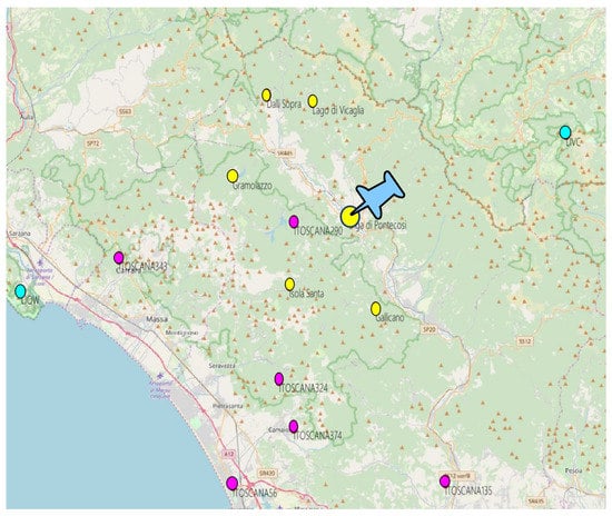 A total of 14 weather stations were used in this project, which are located in a large area nearby the Garfagnana Valley, as shown in