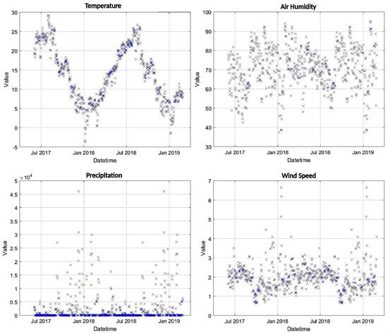 Weather stations (WS) are the most direct way to measure a weather variable. Usually, a WS is a complex system of sensors including not only the sensing elements, but also a data acquisition and transmission system. High-quality weather stations are composed by expensive products, so usually they are installed in key points of the area to be observed. In this project, we considered the following four weather variables acquired from weather stations: