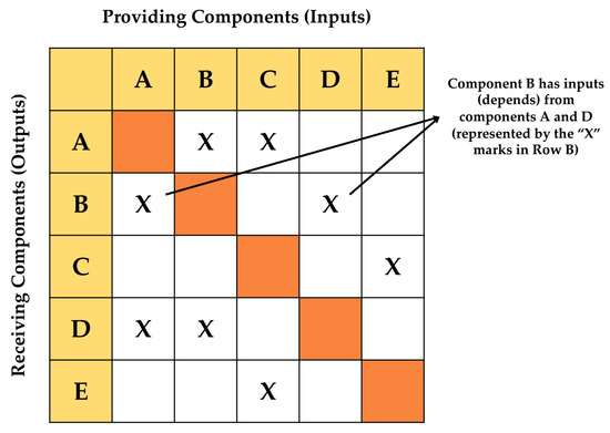 - Conciseness—The DSM’s structured arrangement of elements and their interactions in an N × N array offers a compact representation of a complex system.
