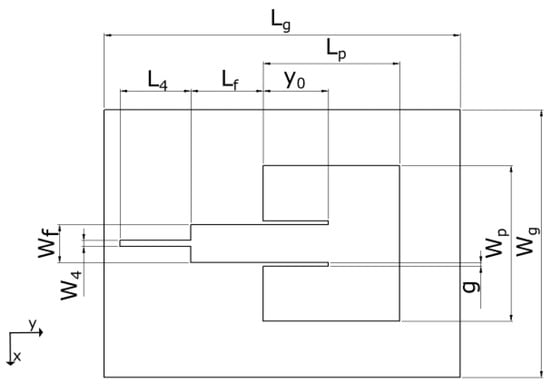 The role of the inset depth, , is to connect the feed line to the desired antenna input impedance , knowing that decays from the patch edge towards the patch center. The calculation of has been covered by several sources [1,12,13,14], and the expression that was used here was [1]: