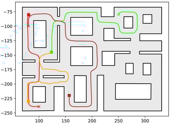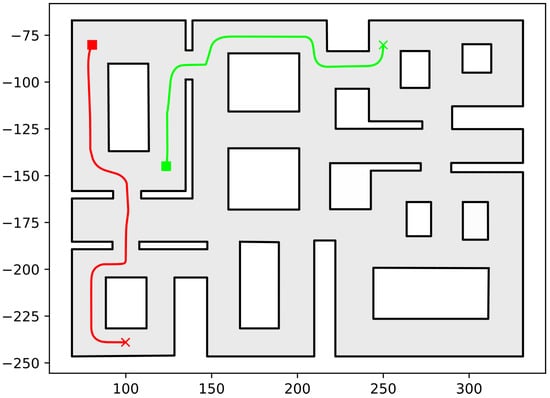 - Svestka, P.; Overmars, M.H. Coordinated Path Planning for Multiple Robots. Robot. Auton. Syst. 1998, 23, 125–152. [Google Scholar] [CrossRef]