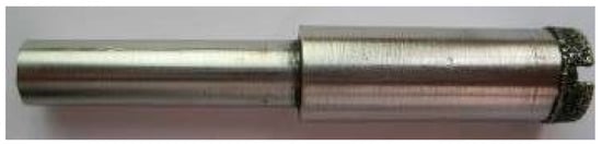 The experiment was performed with a DMG Ultrasonic 20 Linear high-speed machining center. The experimental equipment is shown in Figure 3 The grinding process of end and side face assisted by ultrasonic vibration is shown in Figure 4. Both common grinding (CG) and ultrasonic vibration-assisted grinding (UAG) were performed with a 14h6 ultrasonic tool holder, as shown in Figure 5. A cup-shaped sintered diamond grinding wheel with a diameter of Ø24 mm, a wall thickness of 2 mm, and an average diamond grain diameter of approximately 91 μm was used, as shown in Figure 6. The coolant was a water-based emulsion (Castrol) with a concentration of approximately 4–5%. During the experiment, both internal cooling and external cooling were used, and the internal /external cooling pressure was 20/4 bar.