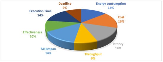 Table 21 outlines a method for evaluating the above research utilizing the assessment factors in IoT and other application areas. Most research studies in the different areas evaluated their offered approach in the makespan, cost, throughput, and execution time characteristics.