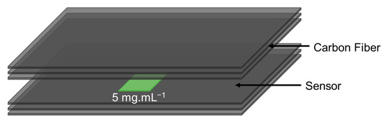 Multifunctional composites with embedded impact sensors were produced using plain weave carbon fiber fabric as reinforcing fibers and vinyl-ester resin as the system’s matrix. As shown in Figure 2, the sensors were embedded between the third and fourth carbon fiber plies. The data from the sensors were collected using embedded copper electrodes. Six layers of reinforcing fibers were used to create the final composite. Vacuum-assisted resin transfer molding (VARTM) infusion was used as usual.