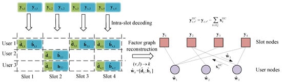 Then send to the intra-slot decoder in Section 3.2.1, where the reliable decoded message can be recovered. Consequently, the user node subsets and can be updated by the backward messages. Perform this process on each overload slot . As a result, will decrease after each iteration, for the underload slots are always helping the overload ones by message propagation on the factor graph. Under appropriate conditions, the SIC can converge to the required level.