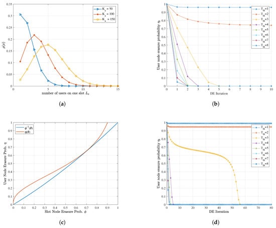 Moreover, the convergence behavior of the SIC on the factor graph can be characterized by density evolution (DE), which is similar to the LDPC message passing procedure under the erasure channel [32]. At the t-th iteration, the erasure probability of the slot nodes is and for the user nodes: