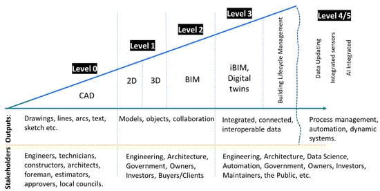 | Level 2 (BIM) | A managed 3D environment held in separate discipline ‘BIM’ tools with data attached; commercial data will be managed by enterprise resource planning software and integrated by proprietary interfaces or bespoke middleware. The dimension of information can be further extended to 4D to include construction sequencing and 5D to include cost information. |