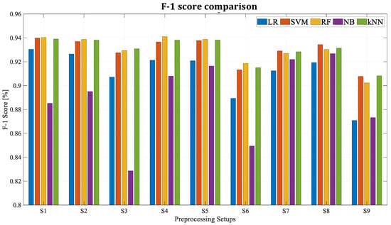 Figure 9. F-1 score for different algorithms and dataset configurations.