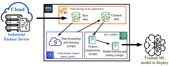 Although the results shown above are a proof of concept, the development is performed using tools used by the industry. Data storage, pre-processing, and modelling are performed using the Amazon Web Services platform. As an example, AWS S3 is used as the main data storage service. In addition, Cloud9 and Amazon SageMaker are used for data pre-processing and algorithm modelling and testing. Moreover, Figure 10 shows a schematic of the developed workflow in AWS. As a result, using those structures in the future for DM projects will reduce the whole detection strategy deployment time.