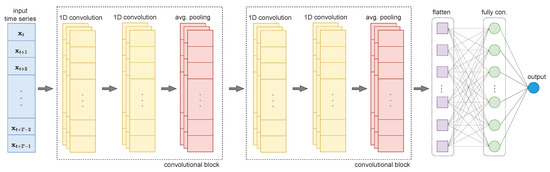 Convolutional Neural Networks (CNNs), originally developed for computer vision, have already shown exceptional performance for a wider range of time-series-related tasks, such as classification [49] and forecasting [50]. Typically, a CNN consists of stacked arrangements of convolutional, pooling and fully-connected layers. By sweeping the input temporal data with 1D convolutions of specifically sized kernels, shared weights in each layer are learned via a back-propagation algorithm. These weights are used to generate feature maps with specific dimension sizes that are likewise convolved and processed in later layers. Intuitively, feature maps incorporate either local patterns or dependencies, which in other cases would be extremely tedious to trace within very large time-series data. On the other hand, via pooling layers, down-sampling (e.g., averaging aggregation) from upstream feature maps is performed, without any actual parameter learning, to increase model’s robustness by reducing the sensitivity of the output to temporal shifts and distortions.