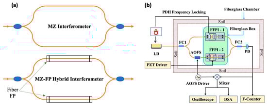In order to precisely gauge the insulation capability of soil, it is necessary to employ a sensor that is highly susceptible to ambient fluctuations. To this end, we have chosen to use a MZ-FP hybrid fiber interferometer. Details about the characterization of this interferometer have been reported elsewhere []. Here, we only give a brief overview of its operation principle for the convenience of the readers.