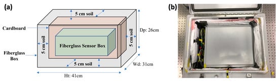 (a) Layout of the insulation chamber with the soil insulation layer. (b) A picture showing the inside of the insulation chamber.