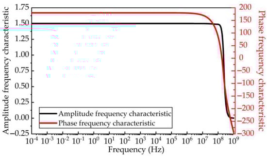 The relationship between input and output voltage shown in Formula (3) is described in Figure 3, while  and  are the results shown in Table 1, respectively. Regarding the  as a variable, we observe that the amplitude of the sampled signal will change with the frequency when the low-voltage port capacitance  will not meet the condition that it is far greater than .