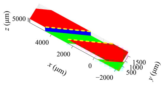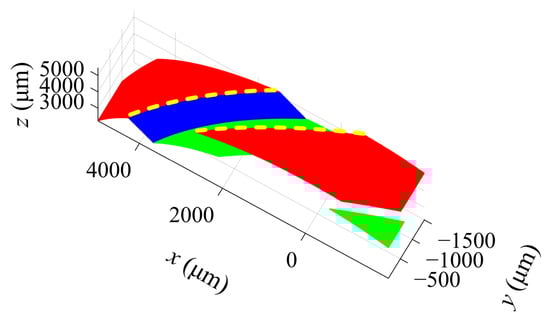 The mapped top and side surfaces are perpendicular, as shown in Figure 9. Planar fitting is conducted to the mapped side surface, and the helix angle β is the angle between the fitted plane and the y axis. The width w is extracted from the distance between the two edges as highlighted in Figure 9.