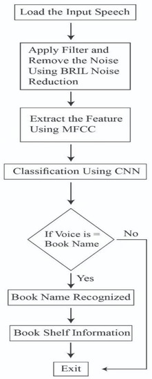 In this module, the user is asked to record their voice and search for a particular book. As the voice is in real-time, there is some noise. The noise is removed from the input voice by applying noise-removing filters. After removing the noise from the input voice, it is passed to the MFCC algorithm to extract useful features from it. After extracting useful features from the input voice, they are passed to the classification algorithm, i.e., CNN, which classifies the input voices and decides whether the book name for which the user has input the voice is in the library or not. If the book name is present in the library book list, then the person is informed about the complete information of the book, i.e., on which floor it is and on which shelf it is placed. If the book’s name is not in the library book list, then the person is informed that the book is not in the library list.